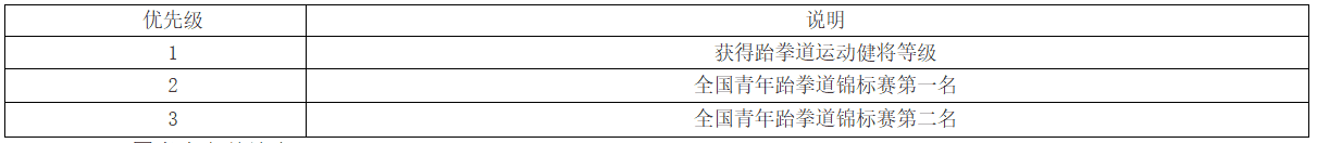 4.跆拳道项目破格资格按照以下优先级排序: